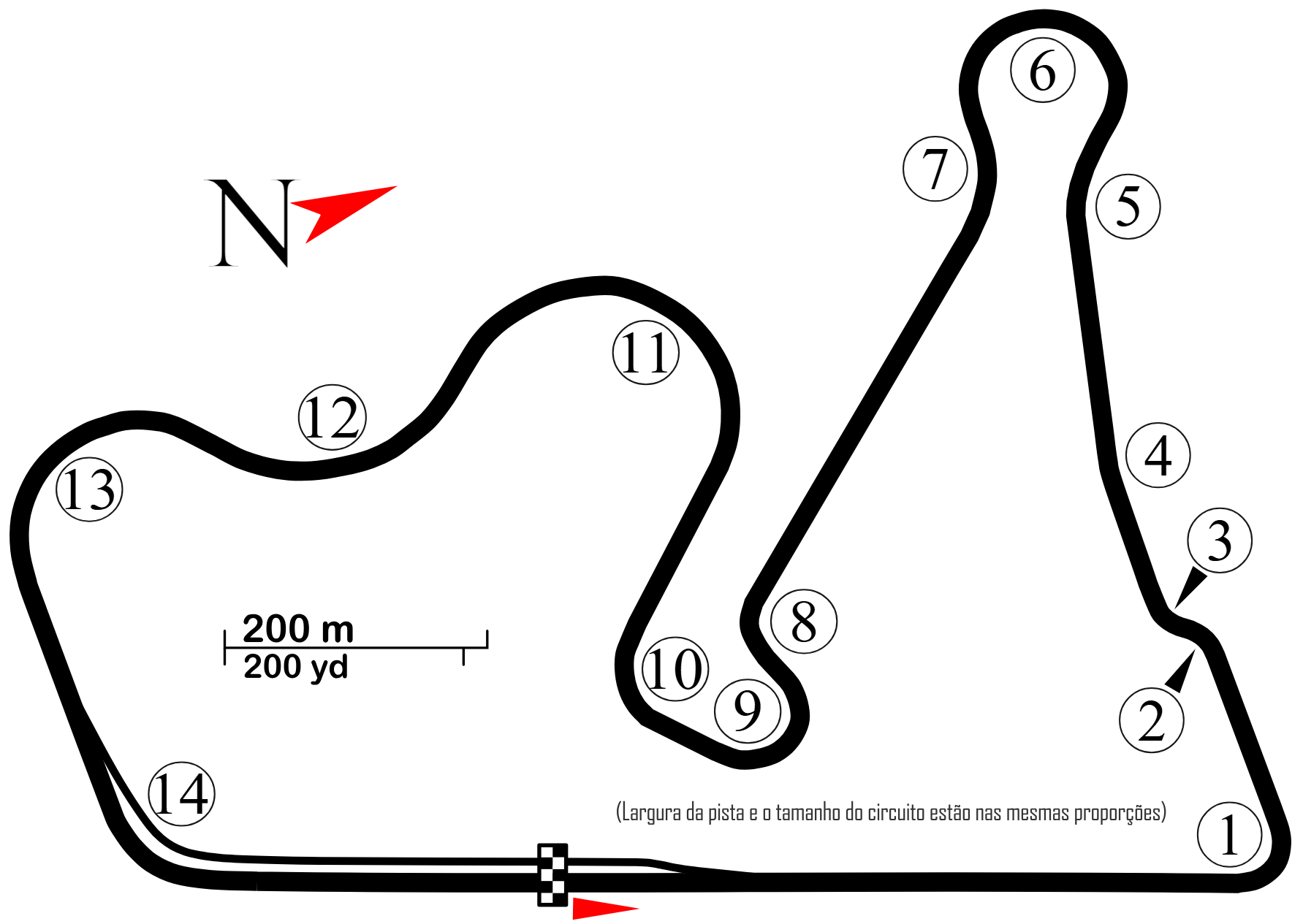 3.530,7 metros de extensão com 14 curvas desafiadoras, sendo 7 à direita e 7 à esquerda, de alta, média e baixa velocidade.
